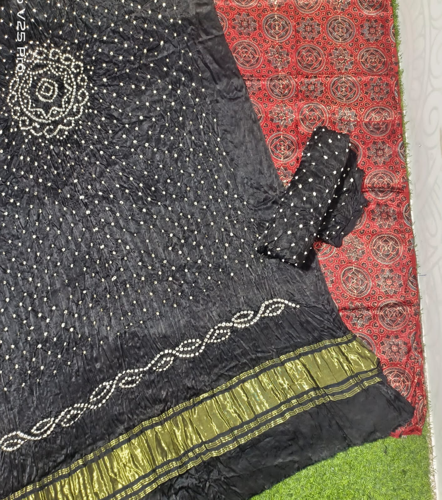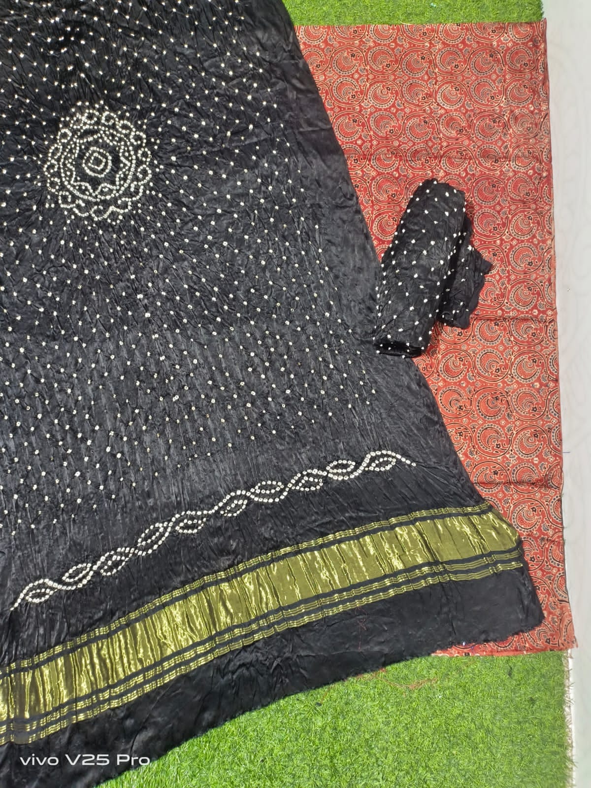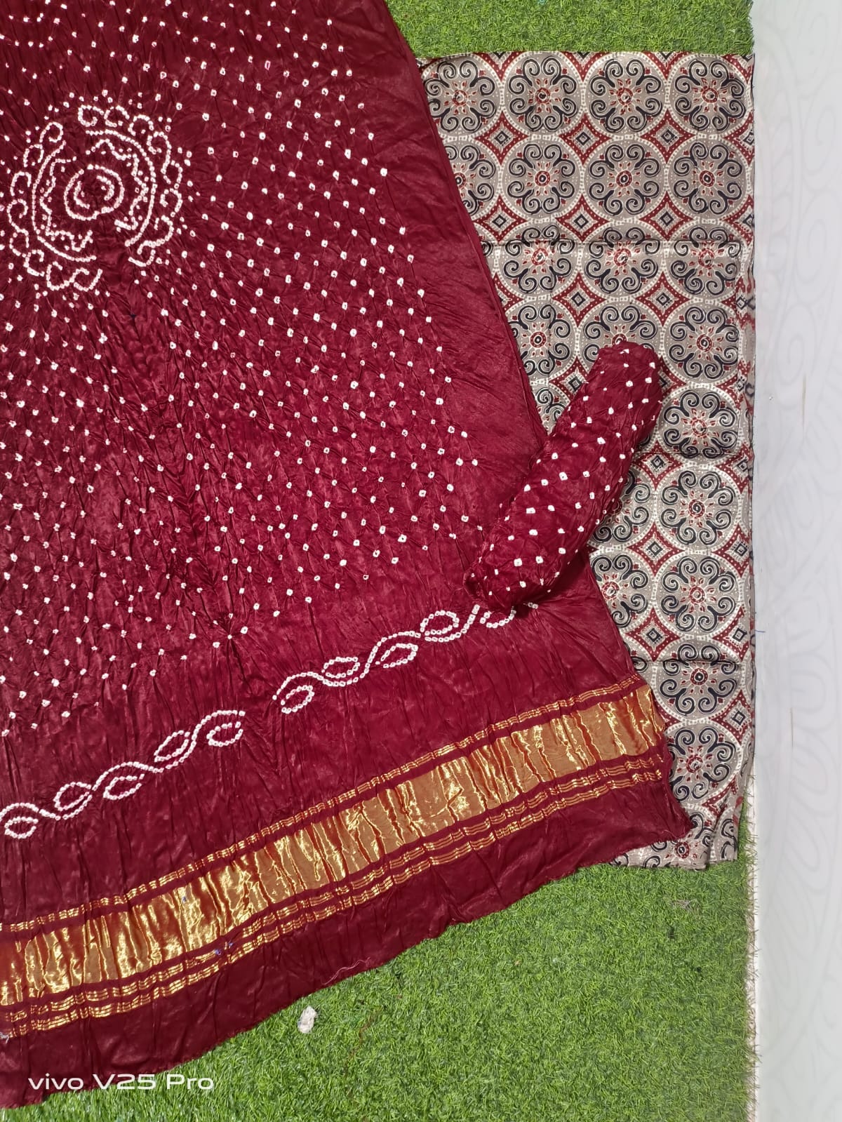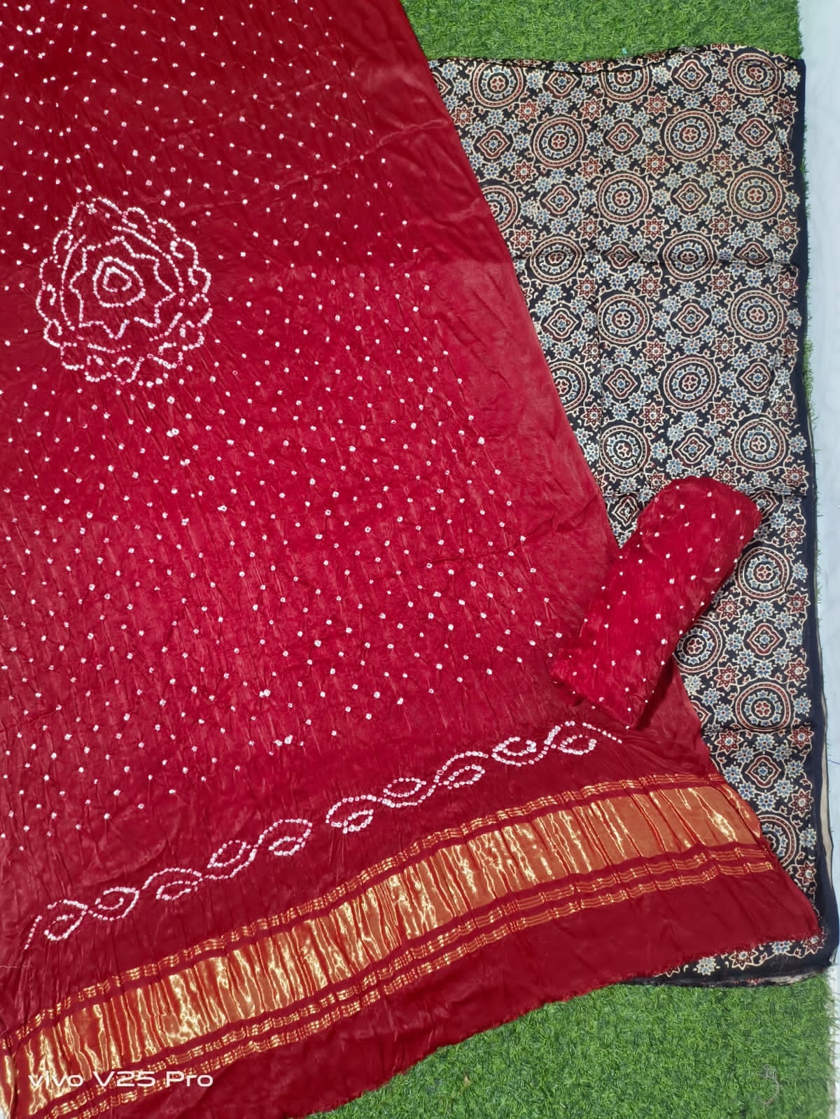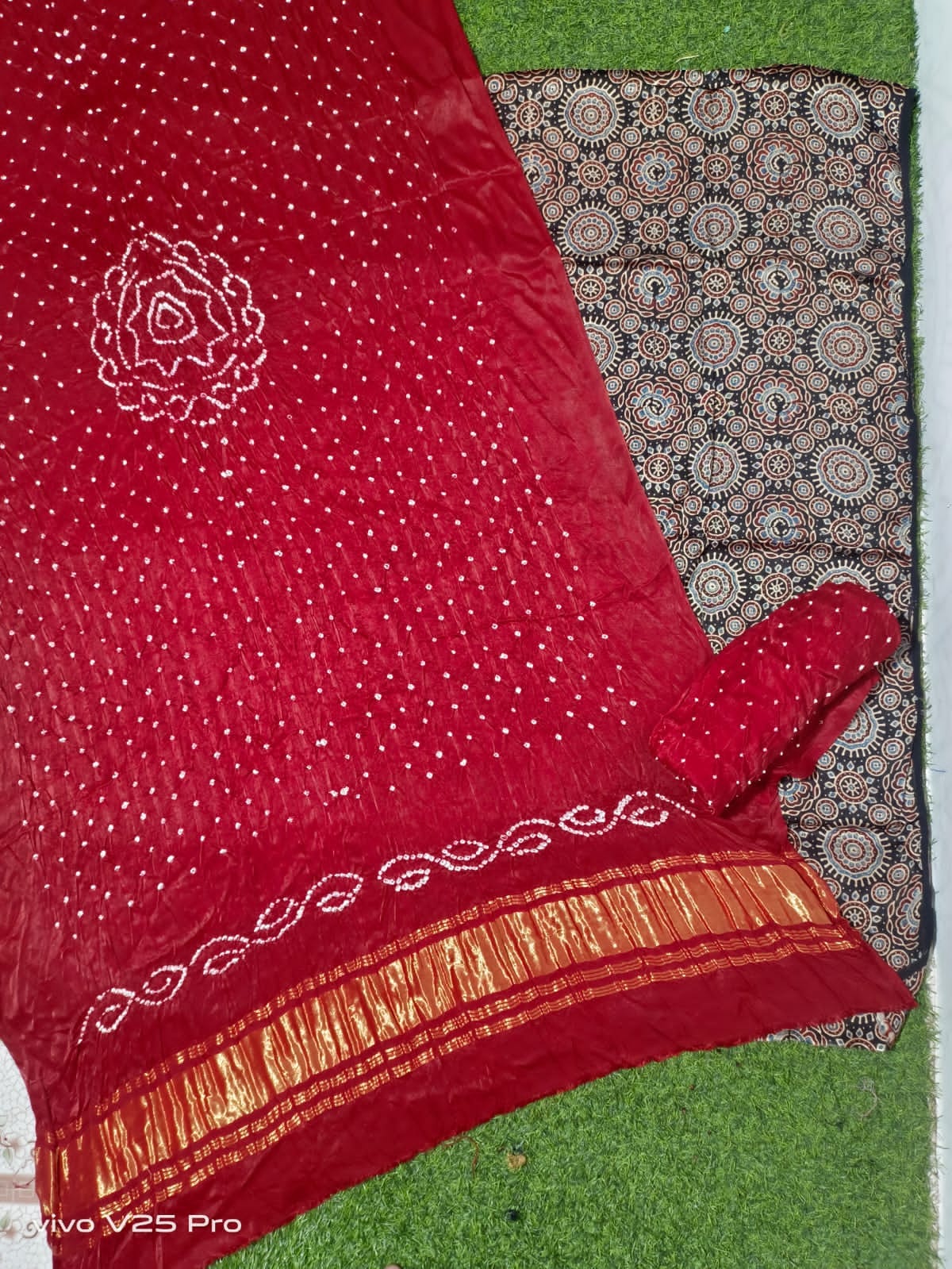 Pattern ….Ajrak print and hand bandhni .