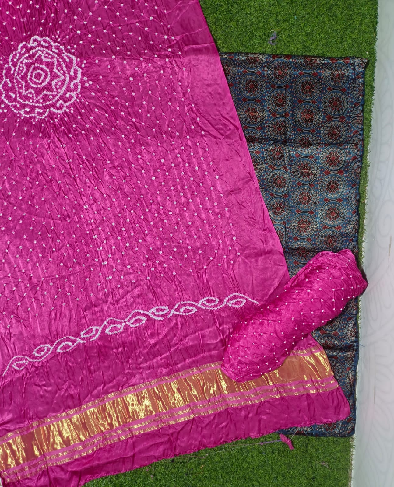 Buy Ajrak print and hand bandhni