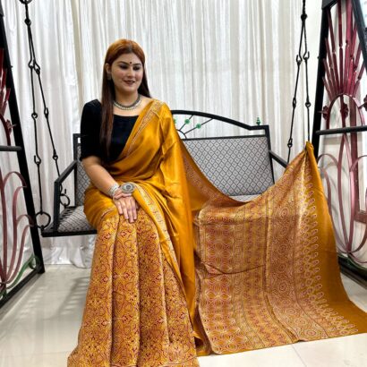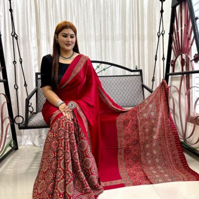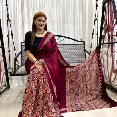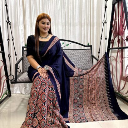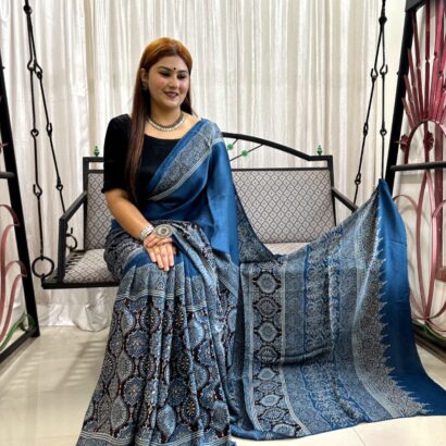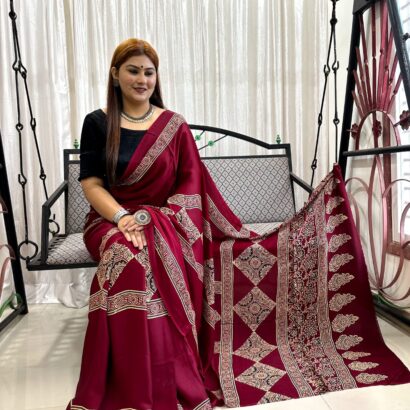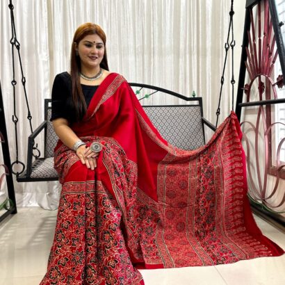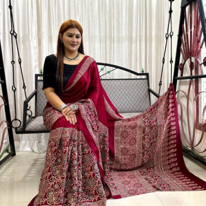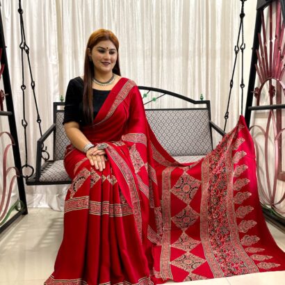 Be the first to review “Ajrakh Hand Block Print Saree” Cancel reply