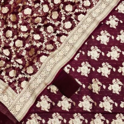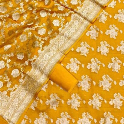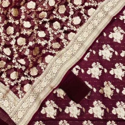 BANARASI HANDLOOM PURE KHADDI GEORGETTE SUIT DUPATTA 2 PIece MADE BY HANDLOOM